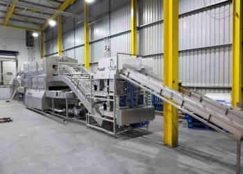 This is a standalone automated wash and palletizing system, with loading units for stacked trays, stacked pallets and dividers, connected to a kombi three level double lane wash-ing machine for plastic egg trays, pallets and dividers. The capacity is up to 13000 trays and 180 pallets/dividers.