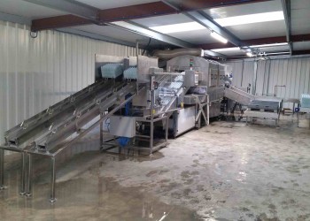 This machine is a manual washing machine in two levels for simultaneously washing of up to 6500 trays and 100 pallets/dividers. It includes a loading table for dividers/pallets, in-feed for trays, main wash with recirculation pump, after rinse, stacker for trays and a spin dryer.